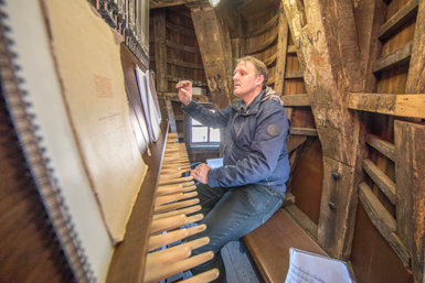 Een organist… dat is in ieder geval iemand, die zo ongeveer in zijn instrument moet kruipen om het te bespelen. En die zittend achter al die toetsen ongezien iets van zich laat horen, en daarin soms nog stevig uitpakt ook! Maar hoe dan ook moet het iemand zijn die niet uit de kerk is weg te slaan, want echte orgels vind je zo ongeveer alleen in kerken. En voor je het weet krijg je bij de organist als musicus een wat eenzaam gevoel…